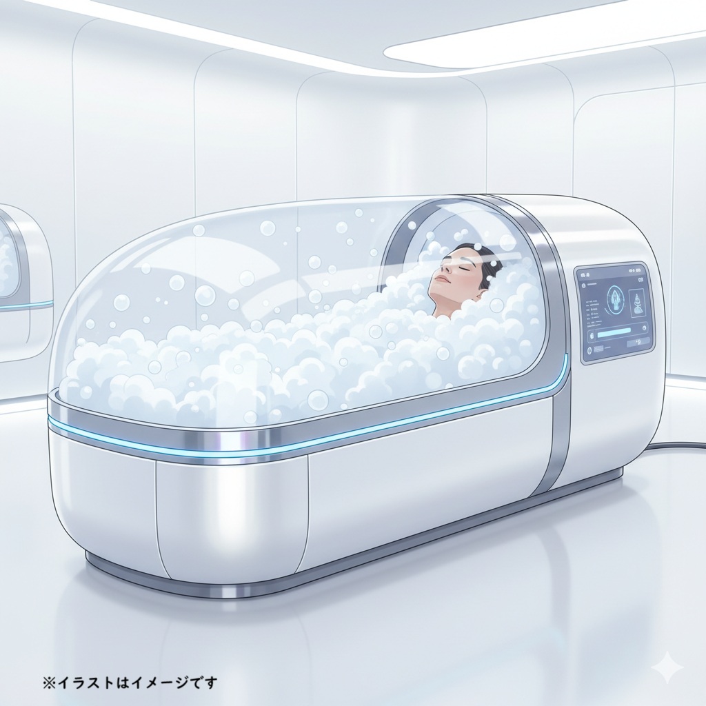 - 温浴効果でリラックス: 超微細な泡が肌を包み込み、温浴効果を高め、心身ともにリラックスできる空間を提供します。「ミライ人間洗濯機」が目指す“ココロも洗われる”癒しを体感できます。