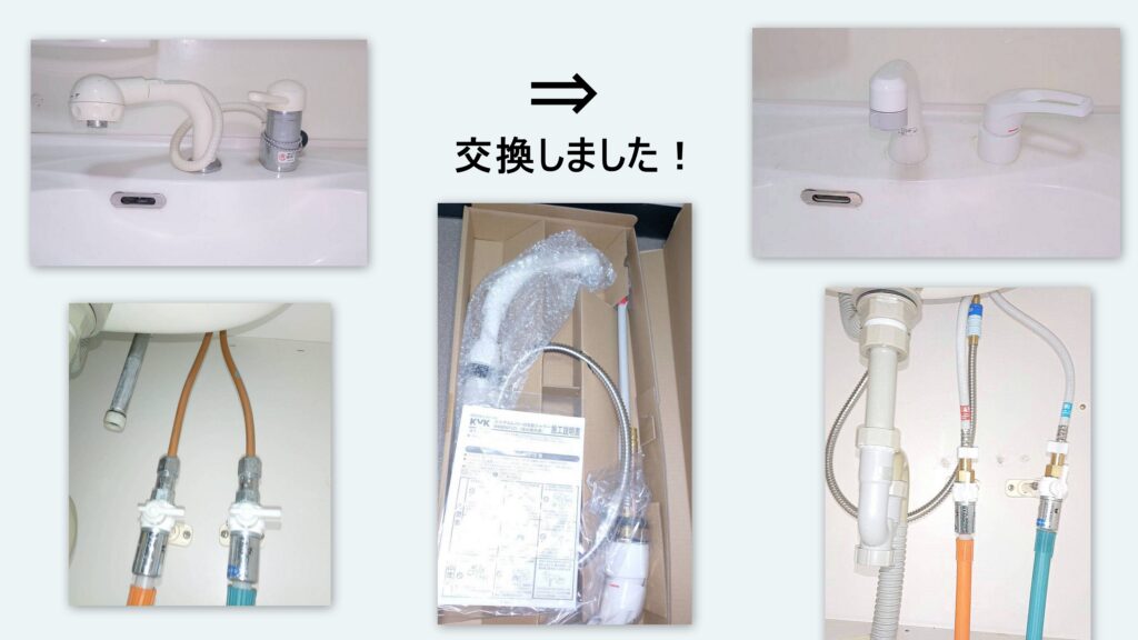 洗面化粧台の水栓を交換致しました。